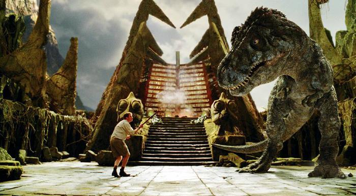 《失落的大陆》(2009),讲述了科学家和他的美女助手在科罗拉多州漂流的时候意外的被河水的漩涡卷进一个神奇的世界,这里到处都是上古时期的生物,不但有巨大的吸血虫、特大号的霸王龙,还有着会英语的猿人和外形不怎么好看的外星来客。图片来源:高品图像