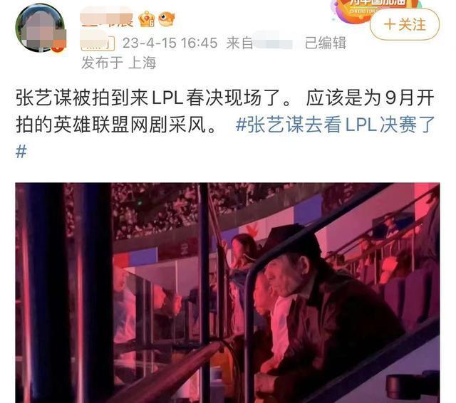 这段时间,张艺谋将跨入网剧领域,拍摄网剧《英雄联盟》的消息引起网友关注。老谋子此番现身电竞比赛现场,想必就是为了新片找灵感吧。