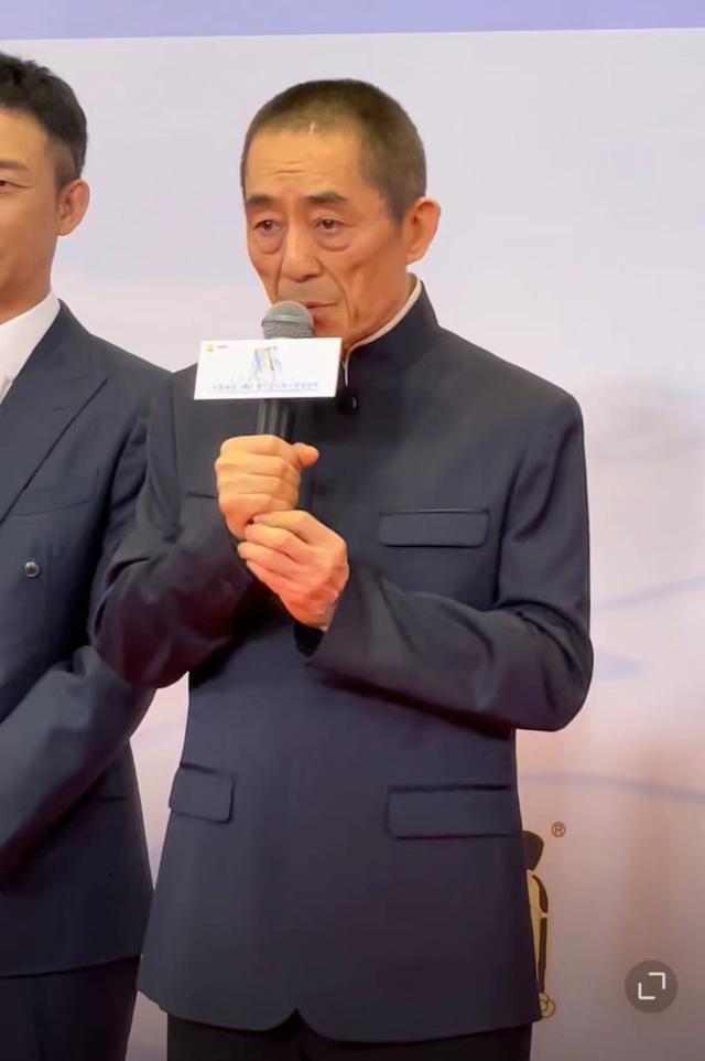 在一众年轻人的海洋中,张艺谋的身影格外引人注目。他当天穿着一袭黑色套装,戴着棒球帽。打扮低调。不过毕竟是73岁的人了,张艺谋早已是老态尽显,他大多数时候都佝偻着背,脸上并没有表情起伏。