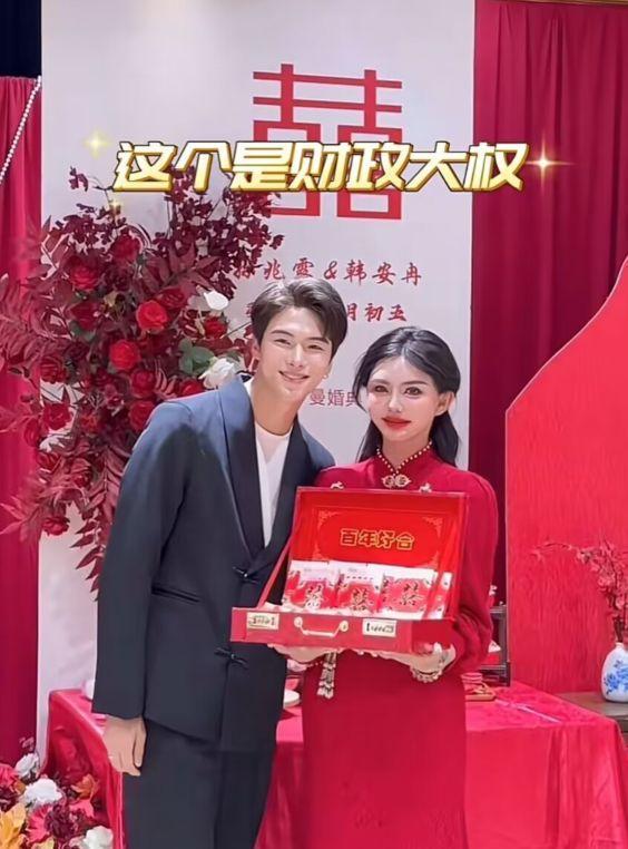 据韩安冉透露,订婚宴是在男方湖北老家举办,当天两家都来了不少亲戚,在酒店大摆宴席。不仅如此,韩安冉还晒出了18万8的彩礼,宋浩然亲自拿到她的手上,让韩安冉掌管财政大权。