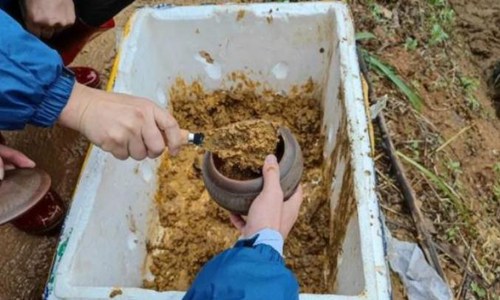 3月24日,广西梧州,MU5735遇难者家属带走一罐现场泥土。当日下午,国家应急处置指挥部举办第四场发布会。发布会介绍,截至24日早上8时,广西梧州(含藤县)住宿的56位旅客家属共计305人,涉及52个家庭。在指挥部的统一安排下,已有200多名旅客家属前往事故现场。