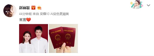 2018年10月16日,恰逢赵丽颖31岁生日,她在微博公布跟冯绍峰结婚,从而瞬间登上各大热搜,引发网友围观热议。