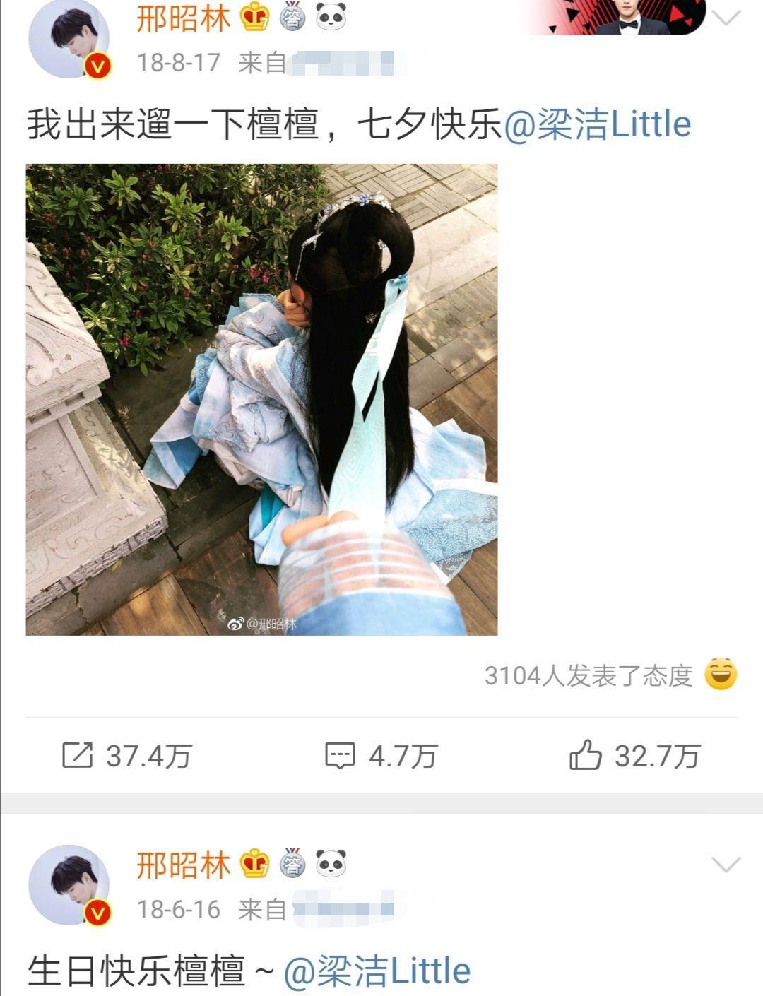 但当年的《双世宠妃》拍得确实很成功,以致于观众难以出戏,认为梁洁和男主邢邵林cp感非常强。梁洁出道以来的电视剧几乎都是和邢邵林合作,剧中两人羡煞旁人,剧外也互动频繁,尤其是邢邵林十分殷勤,经常在微博cue梁洁。