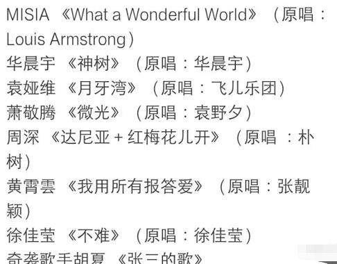 就在近日,网络上面已经有了第三轮第二场竞演的歌单,在这一份提前被曝光的歌单中,我们看到了七位在线歌手和一位奇袭歌手的选曲。在这其中,奇袭歌手胡夏会演唱《张三的歌》,是一首经典老歌,可见胡夏是有备而来,准备给大家带来了一波 “回忆杀”,除此之外,周深在下一场的选曲也是给我们带来了眼前一亮的感受。