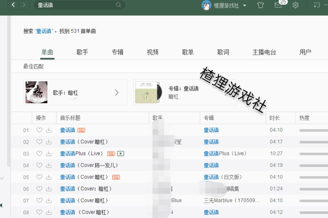 很明显这些平台都下架了关于陈一发的所有东西,楂狸尝试搜索陈一发的代表歌曲“童话镇”,但搜索结果都是一些其他作者的作品。