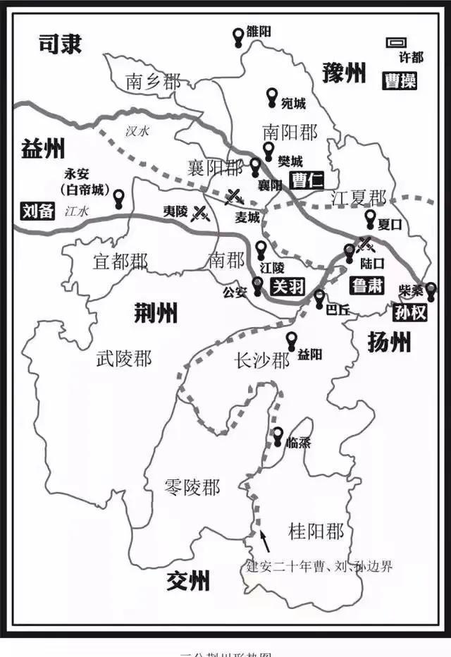 合同最后没有履行,违约方居然是孙权?对的,孙权用暴力强行撕毁合同。刘备千辛万苦占领了成都,孙权马上要求刘备割让荆州南部三郡。通晓天文地理的诸葛亮说“看合同,明明写着取益州后交割南部三郡,现在益州的汉中郡还在张鲁手里,邻近秦川的地方还在曹操手里”。孙权气得吐血,怪自己学业不精,地理偏科,被刘备阴到坑里了。趁刘备主力在四川,派兵攻占了荆州南部的长沙郡、桂阳郡、零陵郡,提前强制执行合同,就是毁约了嘛?
