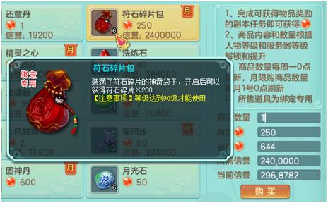 商城每日珍宝还有副本兑换的符石碎片包!如果有神武币可以购买的千万不要错过了。毕竟《神武3》电脑版是个养成游戏,很多东西其实是可以靠日积月累来形成的,符石就是其中一个例子。