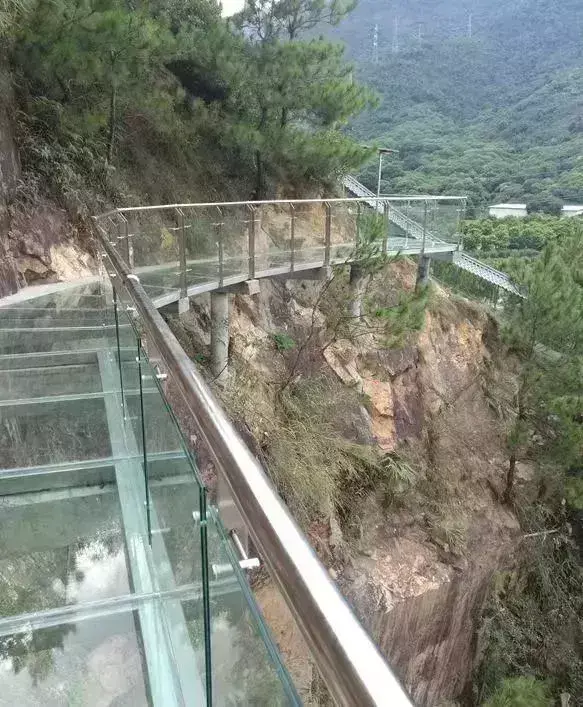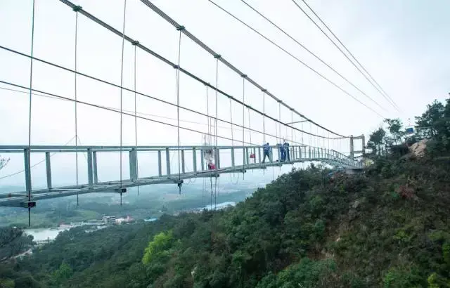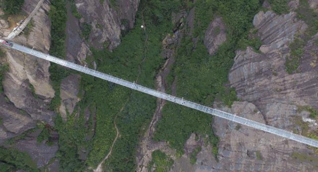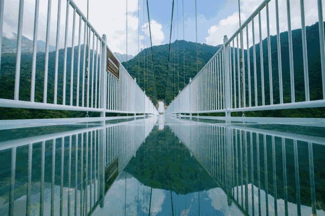 广东省首座全透明高空玻璃桥,桥面全部采用透明玻璃铺设。