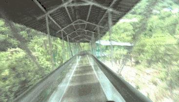 这是广东首条玻璃廊桥滑道,蜿蜒在南丹山的原始森林里,全长200多米。