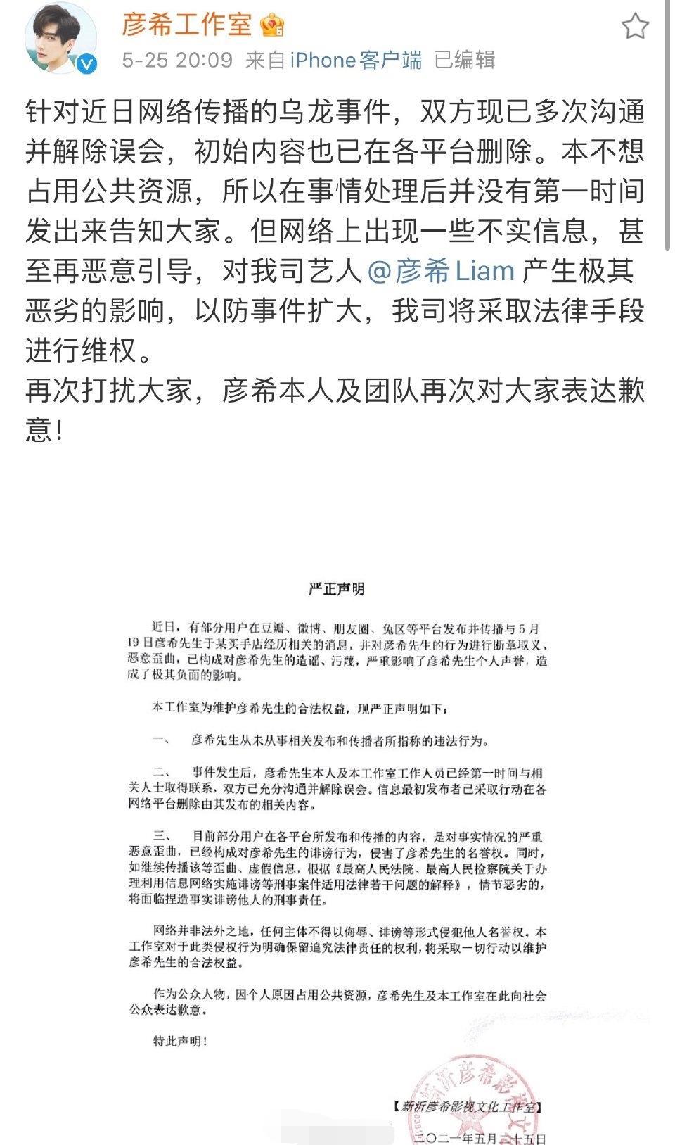 随后彦希工作室发声明维权!