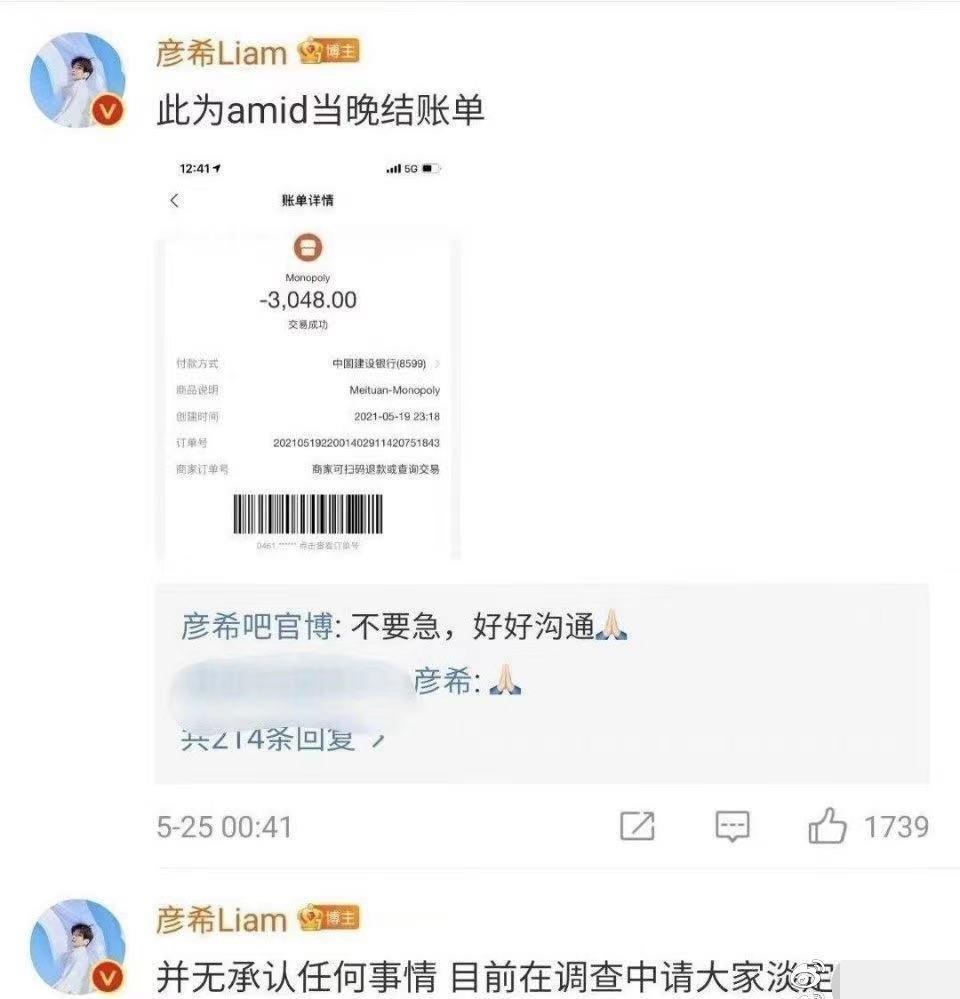 所以这个店家是在借用彦希是公众人物的身份来引导舆论,5月24号晚上发微博称彦希“小偷”“惯犯”,在彦希得知消息后赶往店家是又拒绝沟通,在彦希配合调查过程中,该店合伙人发微博“如他所愿,已jcj并承认偷盗事实,明天来店里给我们赔偿道歉。”10分钟后彦希回应:并无承认任何事情,再配合调查大家放心。