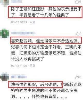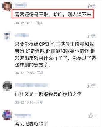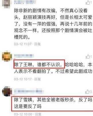 悉数脚色的演员网民似乎都有话说,可是雪姨,依旧是由王琳来演的,这一点列位都鼓掌称好,不外也有人会忧虑,终究经典是本身塑造的,再去演一遍,这个仍旧有难度的,演好了是逾越,演欠好就砸了本身招牌了。