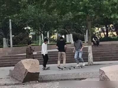 你看,一个玩滑板,一个在旁边陪着玩手机,莫名的甜啊!