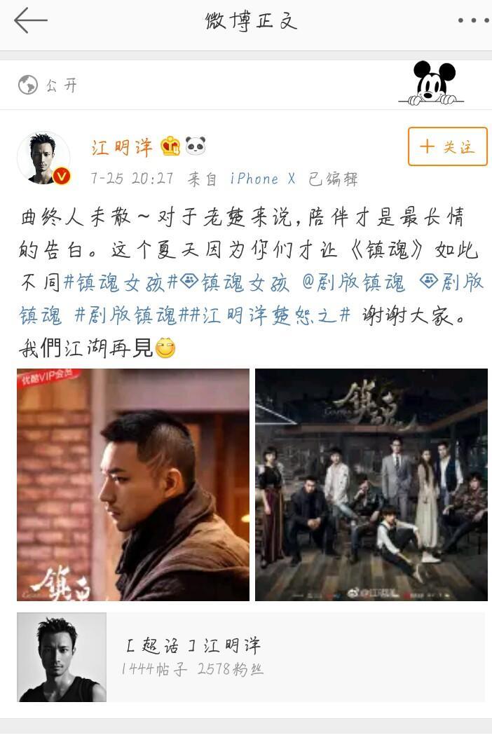 昨天的《镇魂》结局后,几位演员发了微博祝福,真的很感动,没有被大结局虐哭(只想分分钟找编剧聊天,还有心疼我沈巍和赵云澜)倒是被这几位演员的微博虐到暴风哭泣。这个夏天不只感谢两位哥哥,还有特调处的每一个人都为我们带来了感动。今日毕业,愿各自安好。
