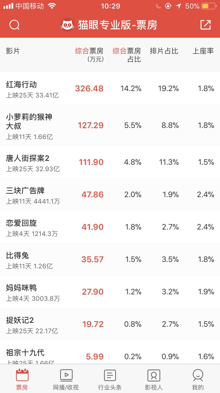 根据猫眼电影专业版数据显示,《唐人街探案2》上映三周后票房已经突破32亿,稍逊于33.41亿的《红海行动》,位列中国电影票房排行榜第四位。
