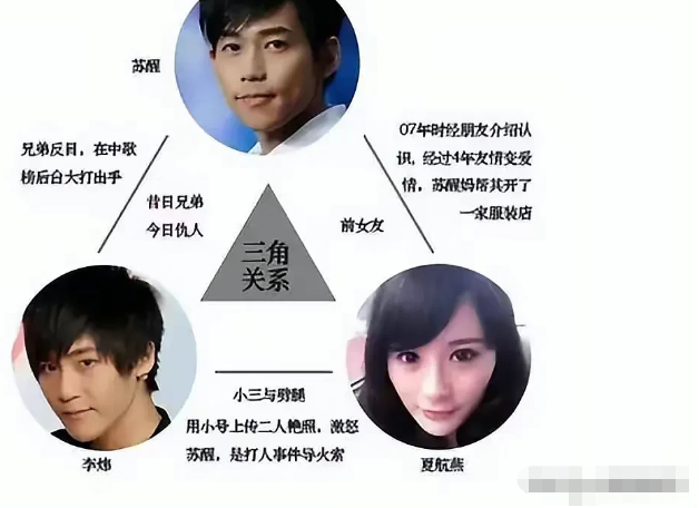 夏航燕是苏醒女友,李炜却晒出了两个人的的合影,给自己打码,没有给夏航燕打码,尺度大,李炜因此被称为托N李天王,苏醒因此在中歌榜后台打了李炜,据说张杰看到了,还贴心给两个人关上了门,张杰关门梗也是因为这个。