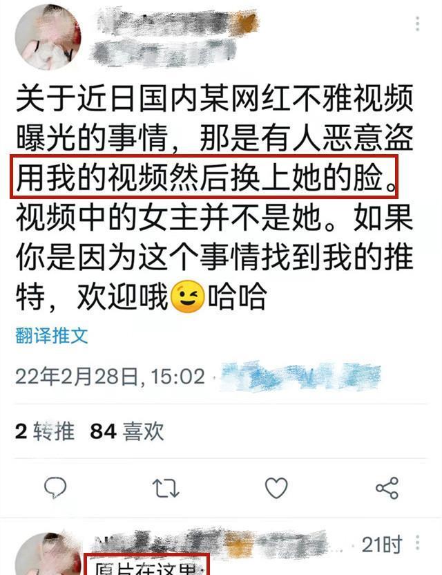 在推特上,原视频女主角也发文表示,自己的视频被人AI换脸成了某网红。
