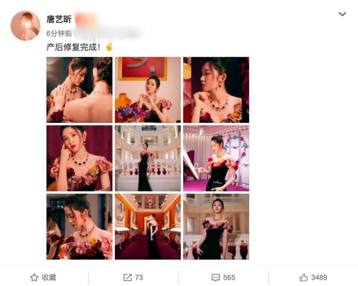 近日,唐艺昕在社交账号上分享了自己穿着花朵抹胸黑色长裙的九宫格艺术照,并配文称自己的产后修复已经完成,收获了许多网友的赞美。