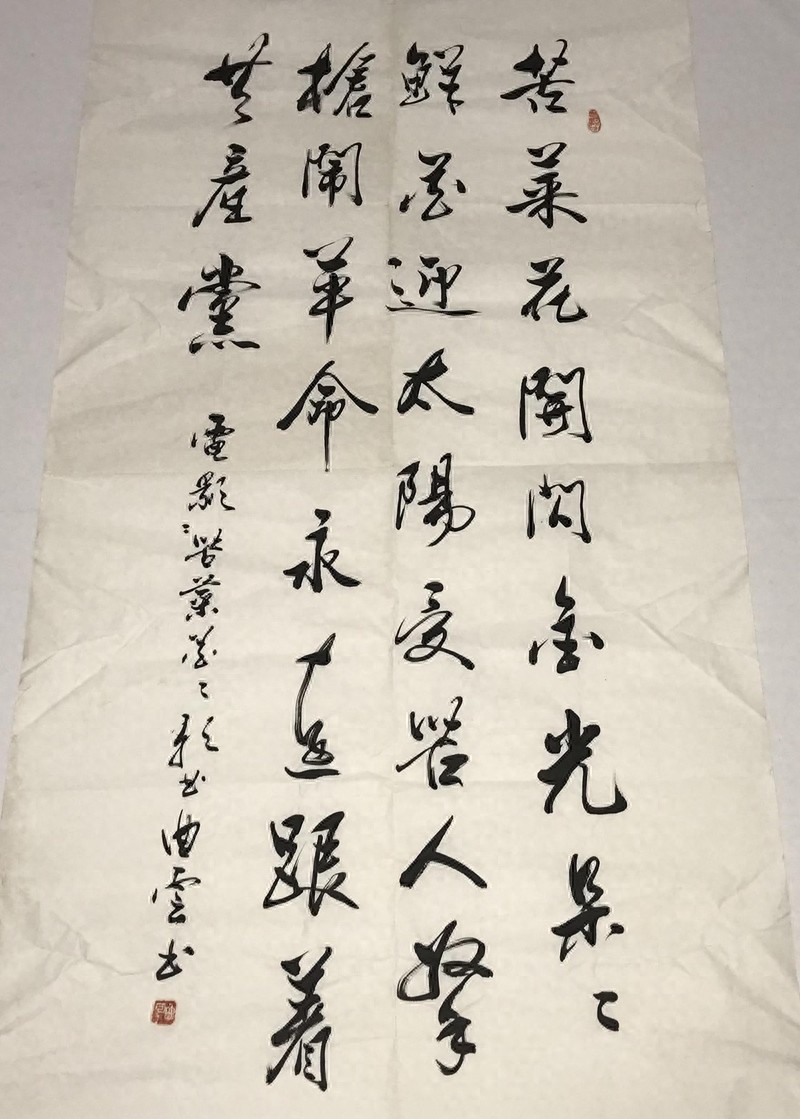 曲云一直上了10多年老年大学,书法作品很有造诣,还会创作古典诗词。她的国画作品《虬》,经世界文化艺术研究中心和美国海外艺术家协会评选,荣获国际荣誉金奖。