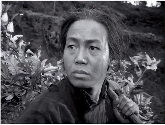 影片一开始就抓住了观众的心:冯大娘带着女儿秀子在挖野菜,女儿手里的苦菜花掉了。这时汉奸王柬芝坐着马车回村,将苦菜花碾碎了。冯大娘怒目圆睁,表现出内心的仇恨。
