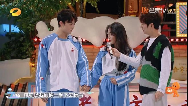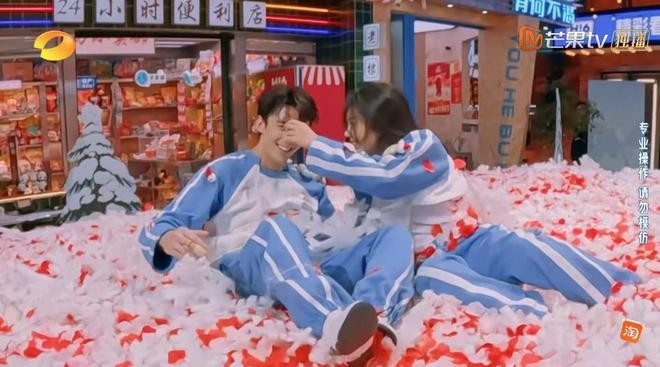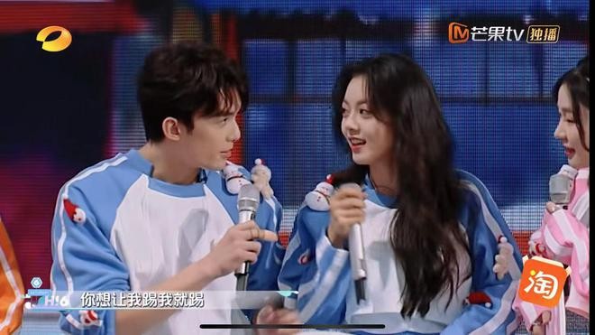 节目要结束之前,两人做游戏,双方都代入剧中,以角色的名义给对方表白,看起来也是氛围感很强,CP 感拉满,代入感也太强了。