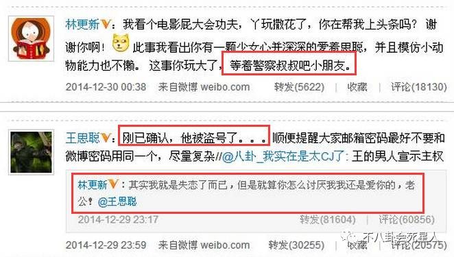 最先是林更新微博被盗号示爱王思聪,王思聪回应有人抱大腿,不认识林