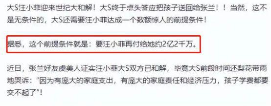 延伸阅读:曝大 S 与汪小菲和解,男方需额外支付 2.2 亿,张兰用 8 个字回应