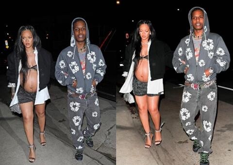 两人在晚上散步时手挽手,蕾哈娜穿着黑色胸罩和一条搭配的带有亮片细节的短裤展示了她不断增长的婴儿。33岁的洛基穿着悠闲一件深灰色的连帽衫,上面印有白色花卉印花和一条配套的牛仔裤。还穿着一条多头的腰带,还有一件灰色T恤和一双黑色运动鞋。