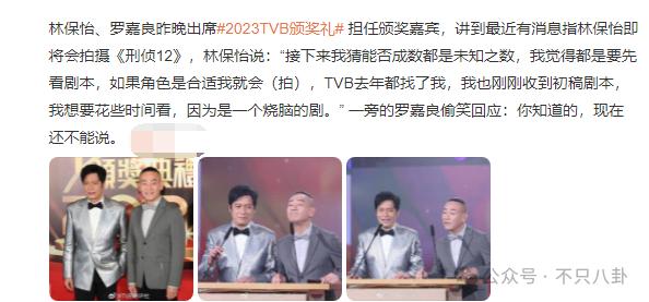 前两天,林保怡罕见露面参加 TVB 颁奖典礼,以颁奖嘉宾的身份出现在台上,依旧还很帅气 ↓