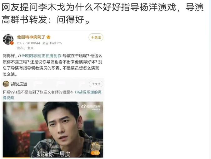 被说端的还有演员杨洋。