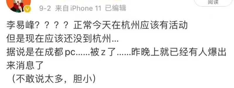 紧接着就到了九月初,有博主指名道姓李易峰 pc 被抓,原本杭州的活动取消了,