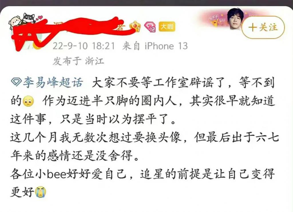 在舆论热度越来越高的情况下,李易峰大粉出来说自己其实早就知道这件事,只是因为多年的感情没舍得放下,