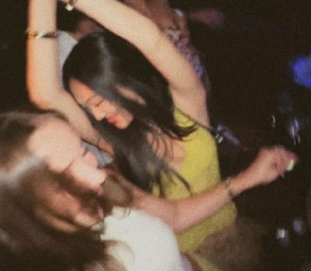 Jane 在社交媒体上晒出了自己与国外友人彻夜聚会的片段,照片中,Jane 换上了鲜黄色的背心与长裙,在派对现场中热情舞动,展现了她的身材和充满活力的形象。