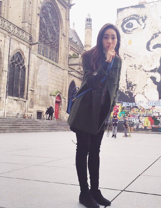 灰色的呢子外套搭配黑色的长筒靴,这样的搭配非常简单保暖,很适合日常穿搭。深灰的外套衬地她皮肤更加白皙,长筒靴大秀美腿,加上一头俏丽的披肩发,利落又帅气,这样深色的穿搭也很有秋冬的气息。
