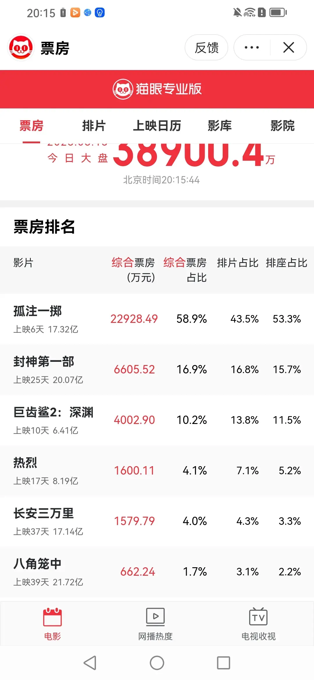 排名第二的是【封神第一部】今天排片占比16.8%,黄金时段排片占比18.9%,目前票房是6605.52万元,上映25天累计票房20.07亿。连续六天【封神第一部】日票房超越【巨齿鲨2】,这让很多友友心里面舒服许多。【封神第一部】现在后劲还是特别的足,每天的票房还是非常的稳定,今天封神第一部总票房突破20个亿,可喜可贺!!!