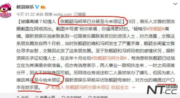 近日,频频有网友爆料张靓颖与冯轲已经离婚,豆瓣八组前几天就已经有人爆料,昨天著名词曲人文雅在朋友圈分享了一段文字再次引发网友猜想张靓颖和冯轲已经离婚的事实!