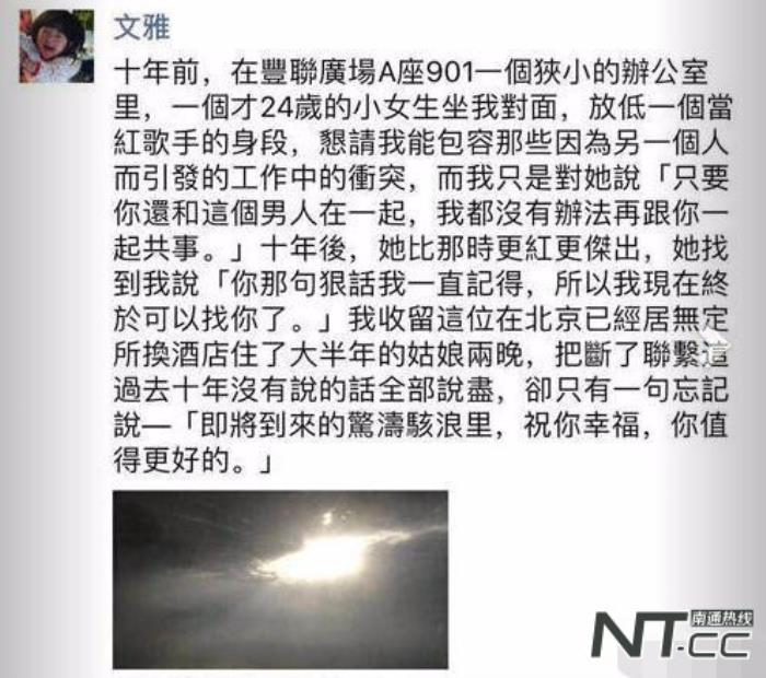 其实文雅的话中意思已经非常明显了,而据腾讯一线记者致电联系文雅询问时,对方回应也非常暧昧,称只是说自己想说的,别人如何解读是别人的事情。