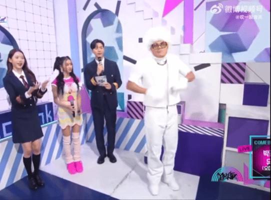 在《音乐银行》采访环节,JYP 还大跳女团 New Jeans 的《Hype Boy》↓