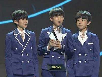在2014年,出道不到1年的TFBOYS就在音悦V榜年度盛典获得了中国内地最具人气歌手奖。第一次上台领奖的三个小朋友都很激动。队长王俊凯激动得“一指擎天”:“感谢我们最热情的粉丝们!”