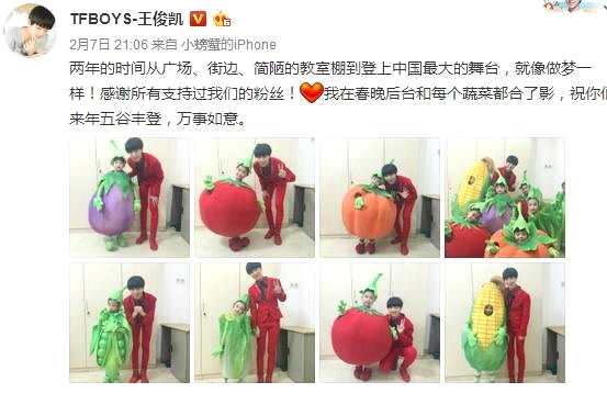 初次参加春晚的王俊凯也很激动,通过微博表达了自己的感恩之心。