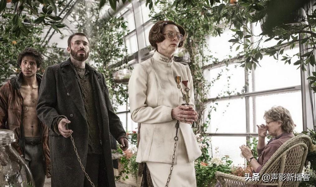 让人颇有感触的是她的造型,一口假牙、戴上发卡的假发、一副圆框眼镜。在观众眼里,她仿佛怪胎一般,充当列车独裁者的执行者,成为列车底层民众的噩梦。