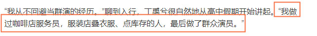 在一次机缘巧合下,丁禹兮成为了一名群演,也正是这次的打工经历,让他开始对演员行业感兴趣,并且在大学选择了表演专业。