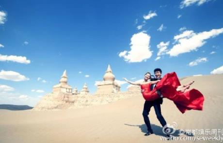 何润东(Peter)与老婆Peggy今年3月登记结婚,将在9月1日举行婚礼,小两口拍婚纱的地点舍弃浪漫的欧洲或海岛,反而到了风沙漫飞的内蒙古,在一周内开车长途跋涉三千多公里来为两人的爱情留下见证。