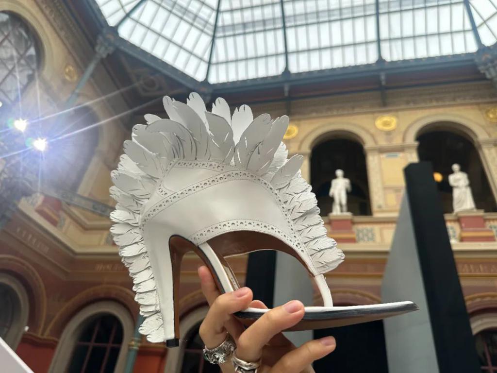 这双白色"羽毛"鞋,更是仙品,每一块皮料的切割都精准到位,真的让皮质拥有了类似羽毛的灵动形态。
