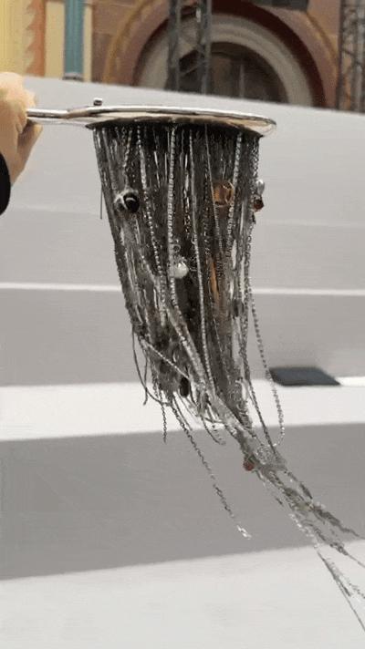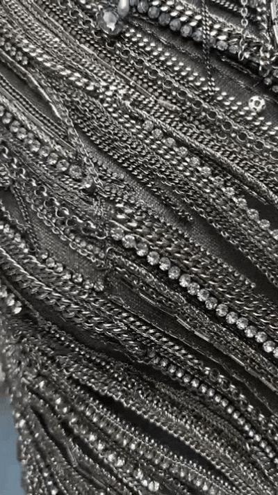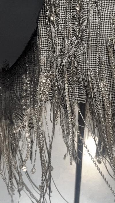 裙身由好几种不同材质不同粗细的金属链条交缠而成,既重工又有个性。