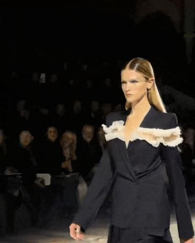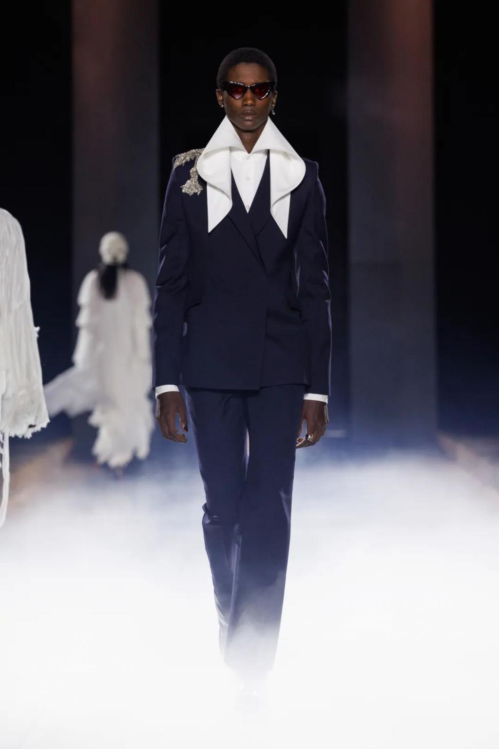 所以Seán McGirr选择西装开场是有他的用意的,他想要证明自己治下的新Alexander McQueen会继承两位前任的衣钵,把精良的剪裁当作品牌的核心。