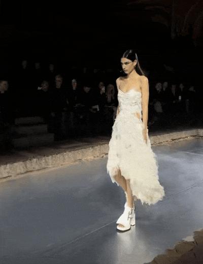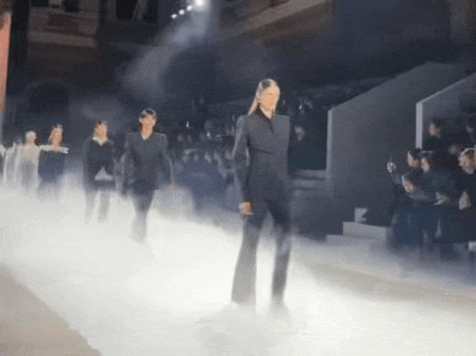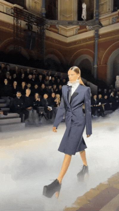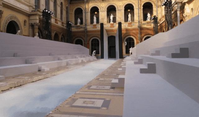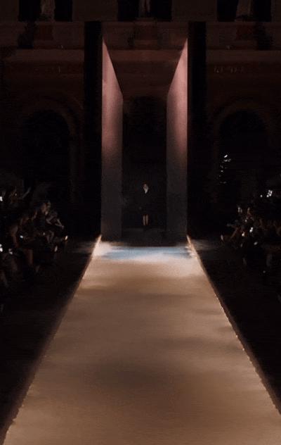 在看到这次大秀场地的时候,我就有种大事很妙的感觉,古典恢弘的巴黎美术学院里却出现了一条金属感的钢板路径。