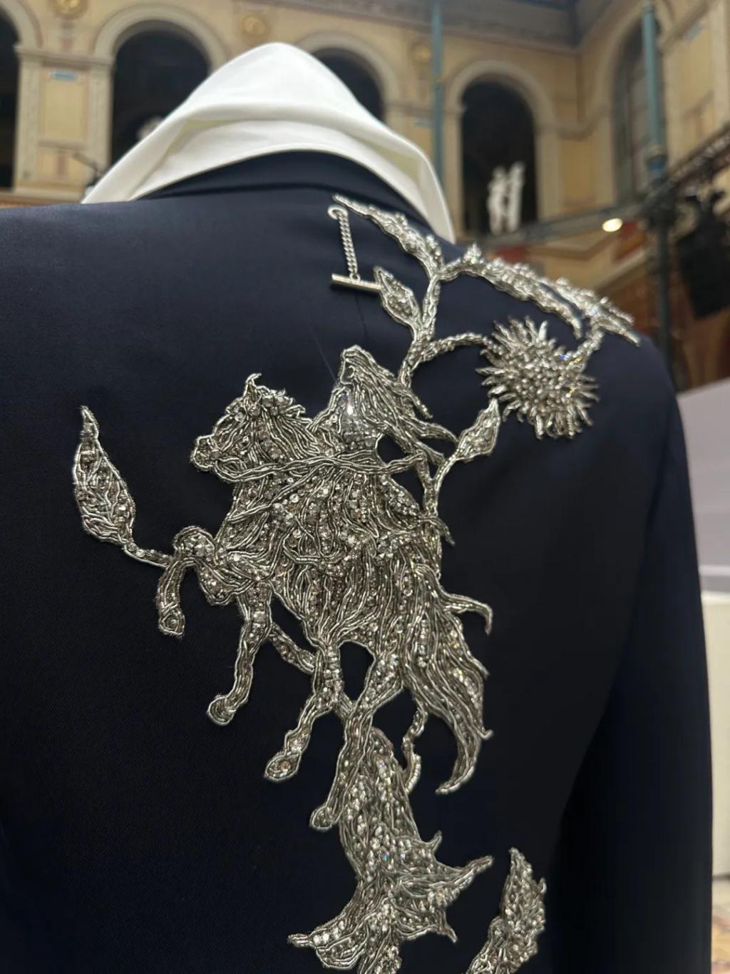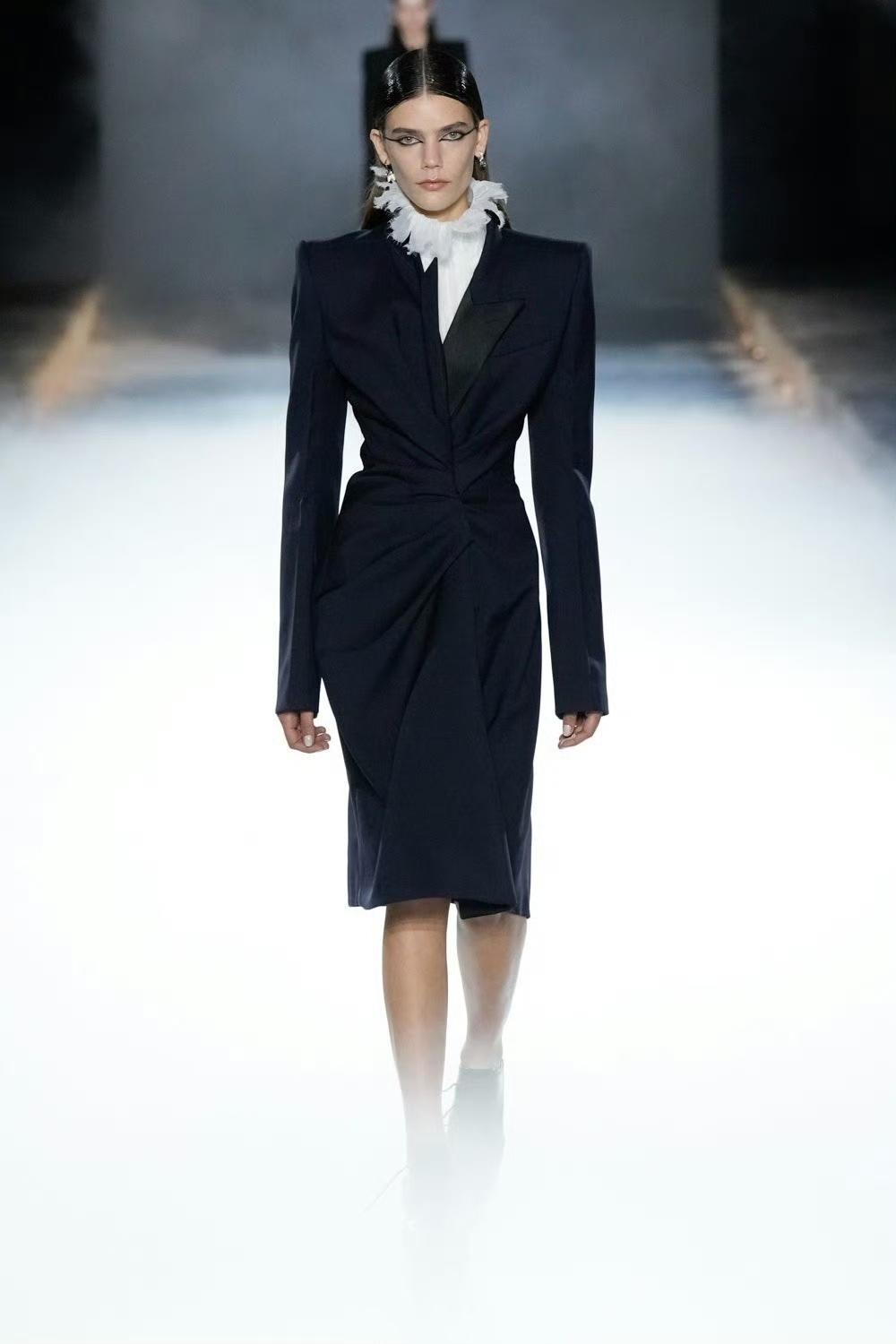 马海毛轻盈,华达呢硬挺,镂空切割、刺绣处理全都无可挑剔,是那种看到实物会被折服的高级感。