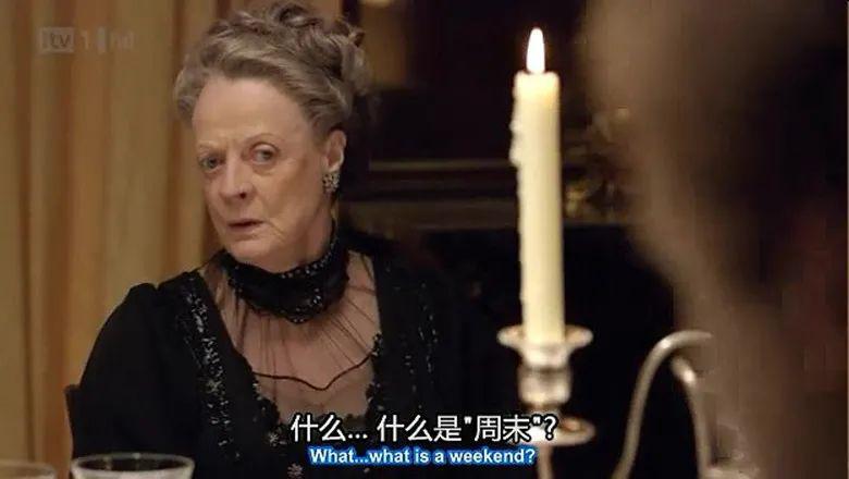 我脑海里飘过了《唐顿庄园》的场景。中产亲戚讲述自己的周末活动。老太太看着她问了一句:"什么是周末?"