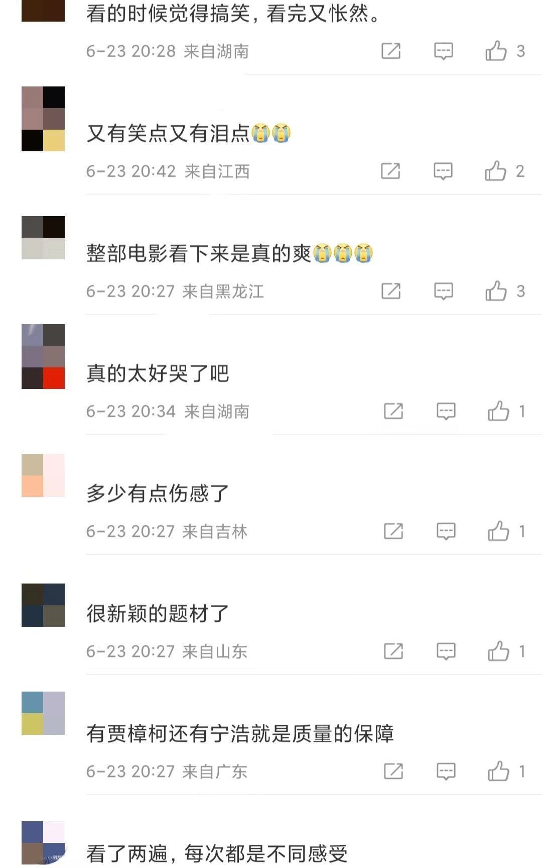 不少网友已经在平台上看完了这个短片,纷纷在社交平台上表示:“看的时候觉得搞笑,看完又怅然”“又有笑点又有泪点”“整部电影看下来是真的爽”“真的太好哭了吧”“有贾樟柯还有宁浩就是质量的保障”……